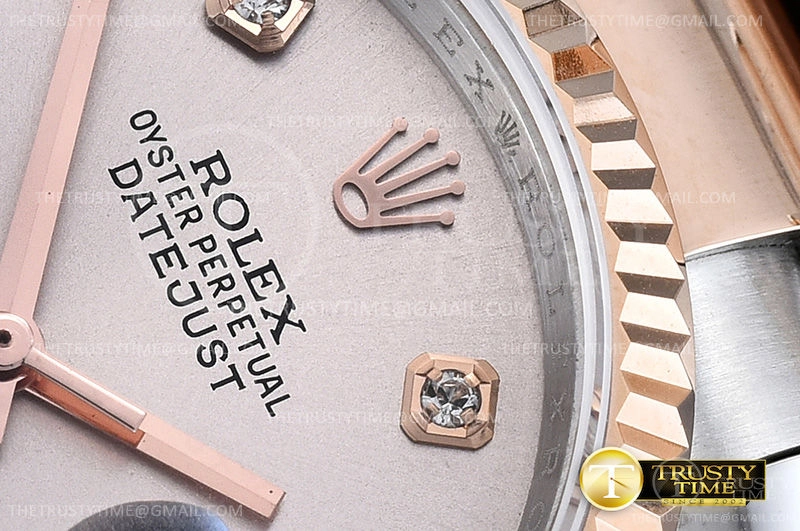 Часы Rolex из коллекции DateJust. Классические женские часы Rolex DateJust 36mm 116231-0072 премиального качества (Артикул магазина: RX-0482) оснащены надежным автоматическим механизмом с автоподзаводом (работает от амплитуды движения руки) калибра 3135, в котором реализованы следующие функции: часовая, минутная и секундная стрелки, а так же дата. Круглый корпус часов комбинированного сталь с розового золота цвета, имеющий размер 36 мм и высоту 12 мм превосходно дополнит образ и украсит запястье своего обладателя. Для изготовления часов Rolex DateJust 36mm 116231-0072 предлагаемых в нашем интернет-магазине, применяются нержавеющая сталь 316F высокого качества (Швейцарский стандарт), а так же сапфировое стекло высокой прочности, благодаря чему обеспечивается максимальная защита от сколов и механических повреждений. Отличительной чертой данной модели является серебристый циферблат, часовые индексы которого обеспечивают камни. Завершает образ браслет из нержавеющей стали комбинированного сталь с розовым золотом цвета с фирменной раскладывающейся застежкой Rolex. Водонепроницаемость данной модели составляет 30М (WR30) – допускается минимальное воздействие с водой.