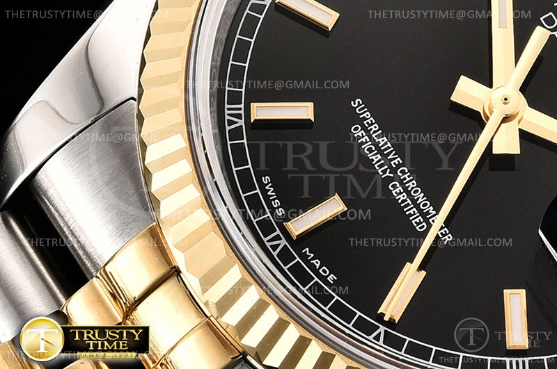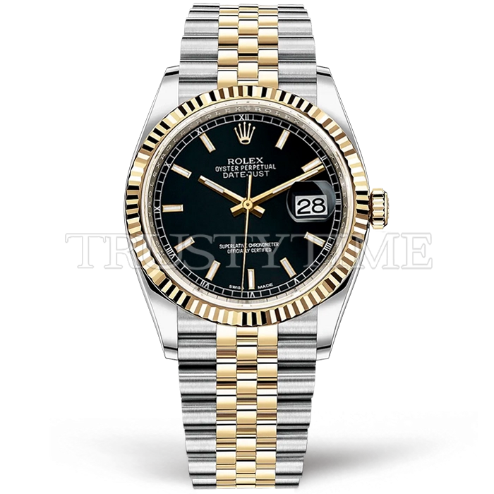 Часы Rolex из коллекции DateJust. Классические женские часы Rolex DateJust 36mm 116233-0199 премиального качества (Артикул магазина: RX-0372) оснащены надежным автоматическим механизмом с автоподзаводом (работает от амплитуды движения руки) калибра 3135, в котором реализованы следующие функции: часовая, минутная и секундная стрелки, а так же дата. Круглый корпус часов комбинированного сталь с желтого золота цвета, имеющий размер 36 мм и высоту 12 мм превосходно дополнит образ и украсит запястье своего обладателя. Для изготовления часов Rolex DateJust 36mm 116233-0199 предлагаемых в нашем интернет-магазине, применяются нержавеющая сталь 904L высокого качества (Швейцарский стандарт), а так же сапфировое стекло высокой прочности, благодаря чему обеспечивается максимальная защита от сколов и механических повреждений. Отличительной чертой данной модели является черный циферблат, часовые индексы которого обеспечивают часовые метки. Завершает образ браслет из нержавеющей стали комбинированного сталь с желтым золотом цвета с фирменной раскладывающейся застежкой Rolex. Водонепроницаемость данной модели составляет 30М (WR30) – допускается минимальное воздействие с водой.