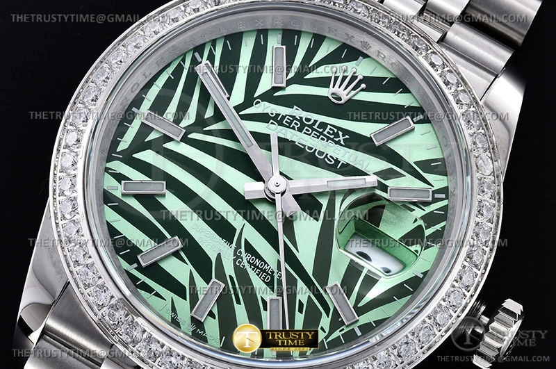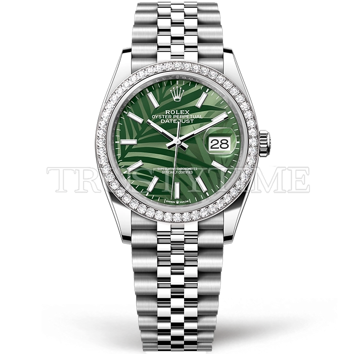 Часы Rolex из коллекции DateJust. Классические женские часы Rolex DateJust 36mm 126284RBR-0039 премиального качества (Артикул магазина: RX-2086) оснащены надежным автоматическим механизмом с автоподзаводом (работает от амплитуды движения руки) калибра 3235, в котором реализованы следующие функции: часовая, минутная и секундная стрелки, а так же дата. Круглый корпус часов стального цвета, имеющий размер 36 мм и высоту 12 мм превосходно дополнит образ и украсит запястье своего обладателя. Для изготовления часов Rolex DateJust 36mm 126284RBR-0039 предлагаемых в нашем интернет-магазине, применяются нержавеющая сталь 316L высокого качества (Швейцарский стандарт), а так же сапфировое стекло высокой прочности, благодаря чему обеспечивается максимальная защита от сколов и механических повреждений. Отличительной чертой данной модели является зеленый циферблат, часовые индексы которого обеспечивают часовые метки. Завершает образ браслет из нержавеющей стали стального цвета с фирменной раскладывающейся застежкой Rolex. Водонепроницаемость данной модели составляет 30М (WR30) – допускается минимальное воздействие с водой.