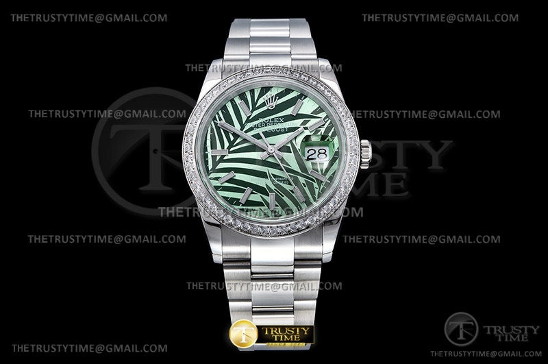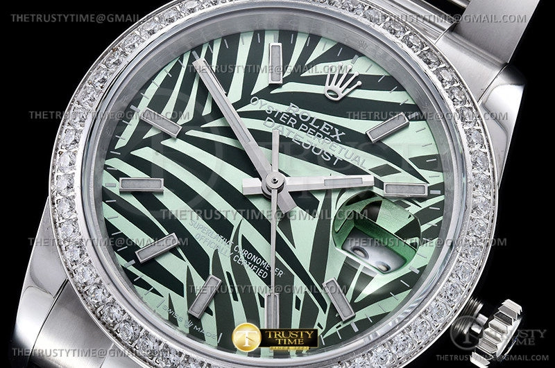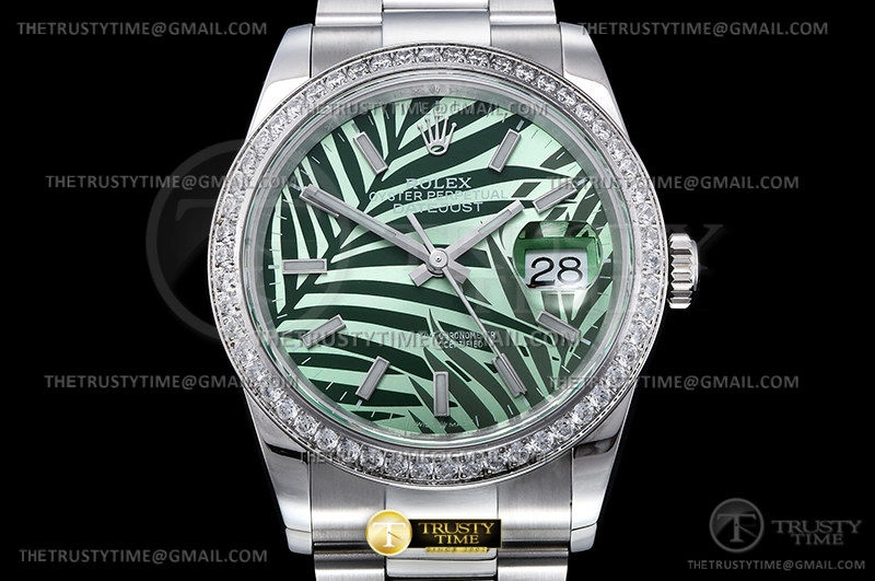 Часы Rolex из коллекции DateJust. Классические женские часы Rolex DateJust 36mm 126284RBR-0040 премиального качества (Артикул магазина: RX-2095) оснащены надежным автоматическим механизмом с автоподзаводом (работает от амплитуды движения руки) калибра 3235, в котором реализованы следующие функции: часовая, минутная и секундная стрелки, а так же дата. Круглый корпус часов стального цвета, имеющий размер 36 мм и высоту 12 мм превосходно дополнит образ и украсит запястье своего обладателя. Для изготовления часов Rolex DateJust 36mm 126284RBR-0040 предлагаемых в нашем интернет-магазине, применяются нержавеющая сталь 316L высокого качества (Швейцарский стандарт), а так же сапфировое стекло высокой прочности, благодаря чему обеспечивается максимальная защита от сколов и механических повреждений. Отличительной чертой данной модели является зеленый циферблат, часовые индексы которого обеспечивают часовые метки. Завершает образ браслет из нержавеющей стали стального цвета с фирменной раскладывающейся застежкой Rolex. Водонепроницаемость данной модели составляет 30М (WR30) – допускается минимальное воздействие с водой.
