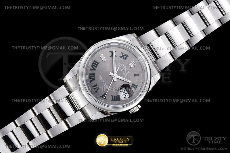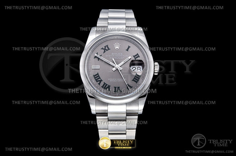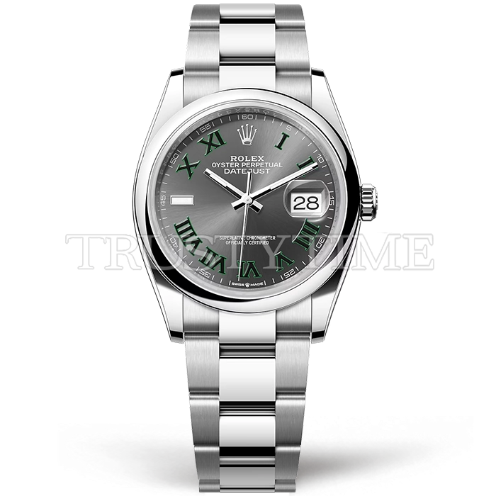 Часы Rolex из коллекции DateJust. Классические женские часы Rolex DateJust 36mm 126200-0018 премиального качества (Артикул магазина: RX-2099) оснащены надежным автоматическим механизмом с автоподзаводом (работает от амплитуды движения руки) калибра 3235, в котором реализованы следующие функции: часовая, минутная и секундная стрелки, а так же дата. Круглый корпус часов стального цвета, имеющий размер 36 мм и высоту 12 мм превосходно дополнит образ и украсит запястье своего обладателя. Для изготовления часов Rolex DateJust 36mm 126200-0018 предлагаемых в нашем интернет-магазине, применяются нержавеющая сталь 316L высокого качества (Швейцарский стандарт), а так же сапфировое стекло высокой прочности, благодаря чему обеспечивается максимальная защита от сколов и механических повреждений. Отличительной чертой данной модели является серый циферблат, часовые индексы которого обеспечивают римские цифры. Завершает образ браслет из нержавеющей стали стального цвета с фирменной раскладывающейся застежкой Rolex. Водонепроницаемость данной модели составляет 30М (WR30) – допускается минимальное воздействие с водой.