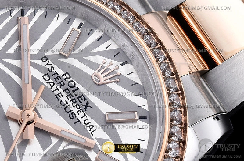 Часы Rolex из коллекции DateJust. Классические женские часы Rolex DateJust 36mm 126281RBR-0020 премиального качества (Артикул магазина: RX-2132) оснащены надежным автоматическим механизмом с автоподзаводом (работает от амплитуды движения руки) калибра 3235, в котором реализованы следующие функции: часовая, минутная и секундная стрелки, а так же дата. Круглый корпус часов комбинированного сталь с розового золота цвета, имеющий размер 36 мм и высоту 12 мм превосходно дополнит образ и украсит запястье своего обладателя. Для изготовления часов Rolex DateJust 36mm 126281RBR-0020 предлагаемых в нашем интернет-магазине, применяются нержавеющая сталь 316L высокого качества (Швейцарский стандарт), а так же сапфировое стекло высокой прочности, благодаря чему обеспечивается максимальная защита от сколов и механических повреждений. Отличительной чертой данной модели является серебристый циферблат, часовые индексы которого обеспечивают часовые метки. Завершает образ браслет из нержавеющей стали комбинированного сталь с розовым золотом цвета с фирменной раскладывающейся застежкой Rolex. Водонепроницаемость данной модели составляет 30М (WR30) – допускается минимальное воздействие с водой.