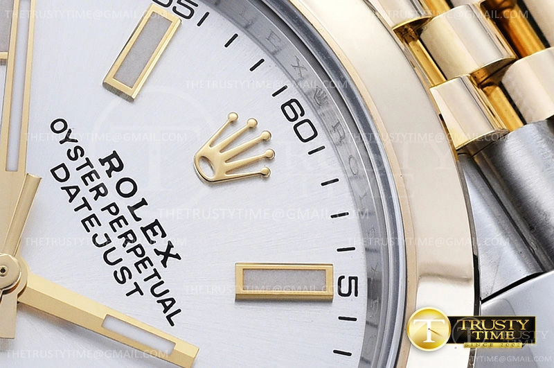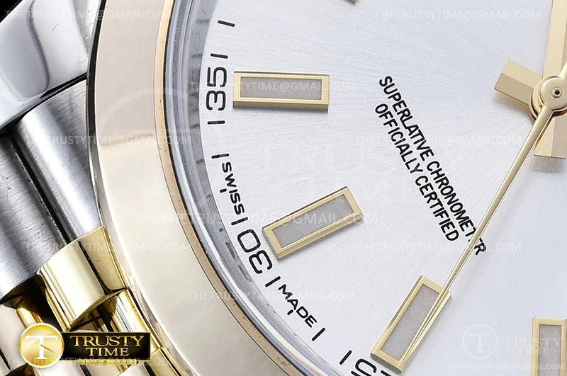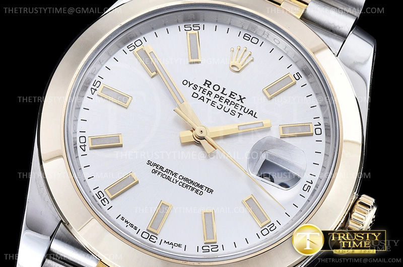 Часы Rolex из коллекции DateJust II. Классические мужские часы Rolex DateJust II 41mm 126303-0002 премиального качества (Артикул магазина: RX-0844) оснащены надежным автоматическим механизмом с автоподзаводом (работает от амплитуды движения руки) калибра 3235, в котором реализованы следующие функции: часовая, минутная и секундная стрелки, а так же дата. Круглый корпус часов комбинированного сталь с желтого золота цвета, имеющий размер 41 мм и высоту 13 мм превосходно дополнит образ и украсит запястье своего обладателя. Для изготовления часов Rolex DateJust II 41mm 126303-0002 предлагаемых в нашем интернет-магазине, применяются нержавеющая сталь 316F высокого качества (Швейцарский стандарт), а так же сапфировое стекло высокой прочности, благодаря чему обеспечивается максимальная защита от сколов и механических повреждений. Отличительной чертой данной модели является серебристый циферблат, часовые индексы которого обеспечивают часовые метки. Завершает образ браслет из нержавеющей стали комбинированного сталь с желтым золотом цвета с фирменной раскладывающейся застежкой Rolex. Водонепроницаемость данной модели составляет 30М (WR30) – допускается минимальное воздействие с водой.