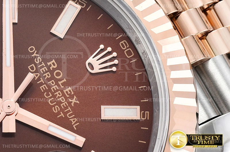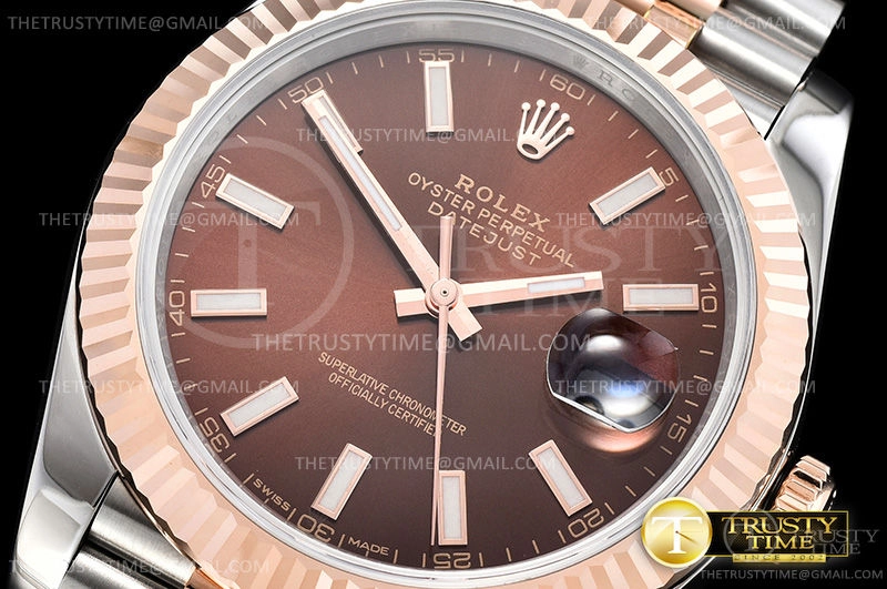 Часы Rolex из коллекции DateJust II. Классические мужские часы Rolex DateJust II 41mm 126331-0002 премиального качества (Артикул магазина: RX-0834) оснащены надежным автоматическим механизмом с автоподзаводом (работает от амплитуды движения руки) калибра 3235, в котором реализованы следующие функции: часовая, минутная и секундная стрелки, а так же дата. Круглый корпус часов комбинированного сталь с розового золота цвета, имеющий размер 41 мм и высоту 13 мм превосходно дополнит образ и украсит запястье своего обладателя. Для изготовления часов Rolex DateJust II 41mm 126331-0002 предлагаемых в нашем интернет-магазине, применяются нержавеющая сталь 316F высокого качества (Швейцарский стандарт), а так же сапфировое стекло высокой прочности, благодаря чему обеспечивается максимальная защита от сколов и механических повреждений. Отличительной чертой данной модели является коричневый циферблат, часовые индексы которого обеспечивают часовые метки. Завершает образ браслет из нержавеющей стали комбинированного сталь с розовым золотом цвета с фирменной раскладывающейся застежкой Rolex. Водонепроницаемость данной модели составляет 30М (WR30) – допускается минимальное воздействие с водой.