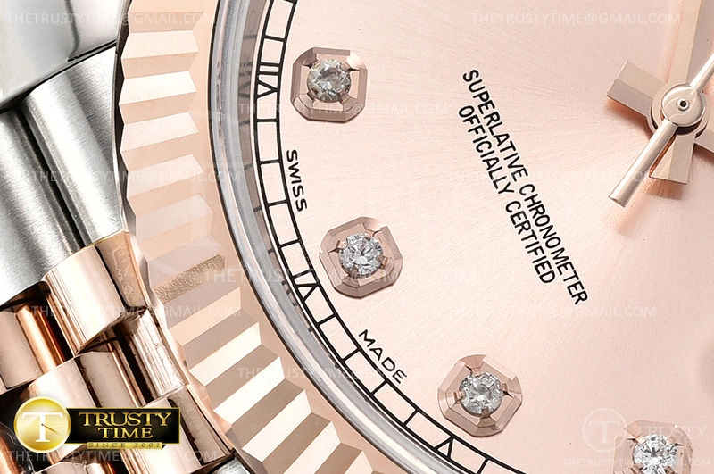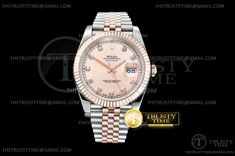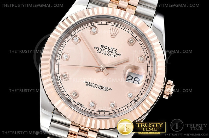 Часы Rolex из коллекции DateJust II. Классические мужские часы Rolex DateJust II 41mm 126331-0008 премиального качества (Артикул магазина: RX-0837) оснащены надежным автоматическим механизмом с автоподзаводом (работает от амплитуды движения руки) калибра 3235, в котором реализованы следующие функции: часовая, минутная и секундная стрелки, а так же дата. Круглый корпус часов комбинированного сталь с розового золота цвета, имеющий размер 41 мм и высоту 13 мм превосходно дополнит образ и украсит запястье своего обладателя. Для изготовления часов Rolex DateJust II 41mm 126331-0008 предлагаемых в нашем интернет-магазине, применяются нержавеющая сталь 316F высокого качества (Швейцарский стандарт), а так же сапфировое стекло высокой прочности, благодаря чему обеспечивается максимальная защита от сколов и механических повреждений. Отличительной чертой данной модели является золотой циферблат, часовые индексы которого обеспечивают камни. Завершает образ браслет из нержавеющей стали комбинированного сталь с розовым золотом цвета с фирменной раскладывающейся застежкой Rolex. Водонепроницаемость данной модели составляет 30М (WR30) – допускается минимальное воздействие с водой.