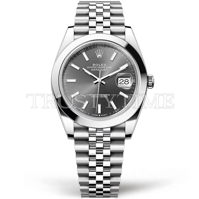 Часы Rolex из коллекции DateJust II. Классические мужские часы Rolex DateJust II 41mm 126300-0008 премиального качества (Артикул магазина: RX-1882) оснащены надежным автоматическим механизмом с автоподзаводом (работает от амплитуды движения руки) калибра 3235, в котором реализованы следующие функции: часовая, минутная и секундная стрелки, а так же дата. Круглый корпус часов стального цвета, имеющий размер 41 мм и высоту 12 мм превосходно дополнит образ и украсит запястье своего обладателя. Для изготовления часов Rolex DateJust II 41mm 126300-0008 предлагаемых в нашем интернет-магазине, применяются нержавеющая сталь 904L высокого качества (Швейцарский стандарт), а так же сапфировое стекло высокой прочности, благодаря чему обеспечивается максимальная защита от сколов и механических повреждений. Отличительной чертой данной модели является серый циферблат, часовые индексы которого обеспечивают часовые метки. Завершает образ браслет из нержавеющей стали стального цвета с фирменной раскладывающейся застежкой Rolex. Водонепроницаемость данной модели составляет 30М (WR30) – допускается минимальное воздействие с водой.