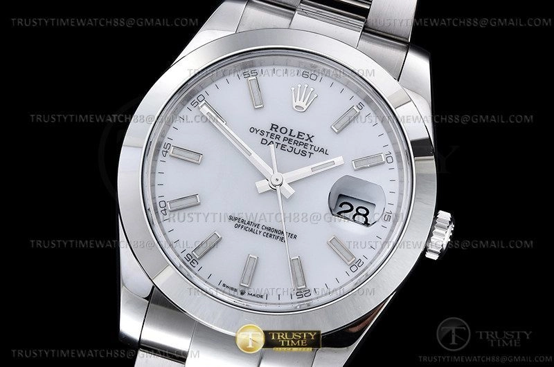 Часы Rolex из коллекции DateJust II. Классические мужские часы Rolex DateJust II 41mm 126300-0005 премиального качества (Артикул магазина: RX-2318) оснащены надежным автоматическим механизмом с автоподзаводом (работает от амплитуды движения руки) калибра 3235, в котором реализованы следующие функции: часовая, минутная и секундная стрелки, а так же дата. Круглый корпус часов стального цвета, имеющий размер 41 мм и высоту 12 мм превосходно дополнит образ и украсит запястье своего обладателя. Для изготовления часов Rolex DateJust II 41mm 126300-0005 предлагаемых в нашем интернет-магазине, применяются нержавеющая сталь 904L высокого качества (Швейцарский стандарт), а так же сапфировое стекло высокой прочности, благодаря чему обеспечивается максимальная защита от сколов и механических повреждений. Отличительной чертой данной модели является белый циферблат, часовые индексы которого обеспечивают часовые метки. Завершает образ браслет из нержавеющей стали стального цвета с фирменной раскладывающейся застежкой Rolex. Водонепроницаемость данной модели составляет 30М (WR30) – допускается минимальное воздействие с водой.