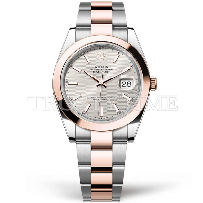 Часы Rolex из коллекции DateJust II. Классические мужские часы Rolex DateJust II 41mm 126301-0017 премиального качества (Артикул магазина: RX-2661) оснащены надежным автоматическим механизмом с автоподзаводом (работает от амплитуды движения руки) калибра 3235, в котором реализованы следующие функции: часовая, минутная и секундная стрелки, а так же дата. Круглый корпус часов комбинированного сталь с розового золота цвета, имеющий размер 41 мм и высоту 12 мм превосходно дополнит образ и украсит запястье своего обладателя. Для изготовления часов Rolex DateJust II 41mm 126301-0017 предлагаемых в нашем интернет-магазине, применяются нержавеющая сталь 904L высокого качества (Швейцарский стандарт), а так же сапфировое стекло высокой прочности, благодаря чему обеспечивается максимальная защита от сколов и механических повреждений. Отличительной чертой данной модели является серебристый циферблат, часовые индексы которого обеспечивают часовые метки. Завершает образ браслет из нержавеющей стали комбинированного сталь с розовым золотом цвета с фирменной раскладывающейся застежкой Rolex. Водонепроницаемость данной модели составляет 30М (WR30) – допускается минимальное воздействие с водой.