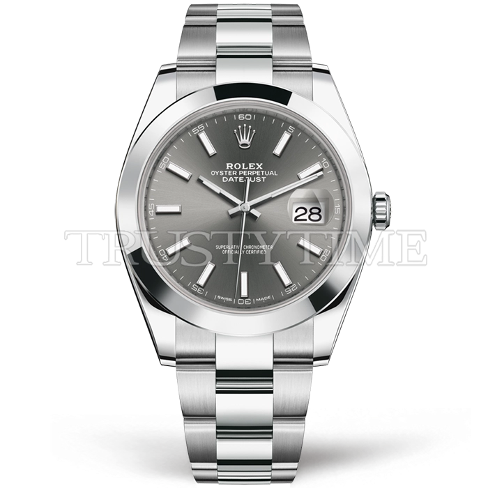 Часы Rolex из коллекции DateJust II. Классические мужские часы Rolex DateJust II 41mm 126300-0007 премиального качества (Артикул магазина: RX-2954) оснащены надежным автоматическим механизмом с автоподзаводом (работает от амплитуды движения руки) калибра 3235, в котором реализованы следующие функции: часовая, минутная и секундная стрелки, а так же дата. Круглый корпус часов стального цвета, имеющий размер 41 мм и высоту 12 мм превосходно дополнит образ и украсит запястье своего обладателя. Для изготовления часов Rolex DateJust II 41mm 126300-0007 предлагаемых в нашем интернет-магазине, применяются нержавеющая сталь 904L высокого качества (Швейцарский стандарт), а так же сапфировое стекло высокой прочности, благодаря чему обеспечивается максимальная защита от сколов и механических повреждений. Отличительной чертой данной модели является серый циферблат, часовые индексы которого обеспечивают часовые метки. Завершает образ браслет из нержавеющей стали стального цвета с фирменной раскладывающейся застежкой Rolex. Водонепроницаемость данной модели составляет 30М (WR30) – допускается минимальное воздействие с водой.
