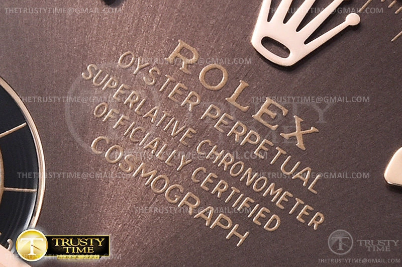 Часы Rolex из коллекции Daytona. Спортивные мужские часы Rolex Cosmograph Daytona 116515LN-0041 премиального качества (Артикул магазина: RX-1309) оснащены надежным автоматическим механизмом с автоподзаводом (работает от амплитуды движения руки) калибра 4130, в котором реализованы следующие функции: часовая, минутная и секундная стрелки, а так же хронограф, дата. Круглый корпус часов розового цвета, имеющий размер 40 мм и высоту 12.5 мм превосходно дополнит образ и украсит запястье своего обладателя. Для изготовления часов Rolex Cosmograph Daytona 116515LN-0041 предлагаемых в нашем интернет-магазине, применяются нержавеющая сталь 904L высокого качества (Швейцарский стандарт), а так же сапфировое стекло высокой прочности, благодаря чему обеспечивается максимальная защита от сколов и механических повреждений. Отличительной чертой данной модели является коричневый циферблат, часовые индексы которого обеспечивают часовые метки. Завершает образ каучуковый ремешок черного цвета с фирменной раскладывающейся застежкой Rolex. Водонепроницаемость данной модели составляет 100М (WR100) – в таких часах можно плавать и нырять без акваланга в морской и пресной воде, а также заниматься водными видами спорта.