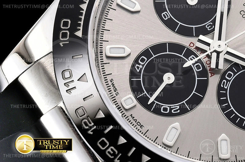 Часы Rolex из коллекции Daytona. Спортивные мужские часы Rolex Cosmograph Daytona 116519LN-0027 премиального качества (Артикул магазина: RX-1620) оснащены надежным автоматическим механизмом с автоподзаводом (работает от амплитуды движения руки) калибра 4130, в котором реализованы следующие функции: часовая, минутная и секундная стрелки, а так же хронограф. Круглый корпус часов стального цвета, имеющий размер 40 мм и высоту 12.5 мм превосходно дополнит образ и украсит запястье своего обладателя. Для изготовления часов Rolex Cosmograph Daytona 116519LN-0027 предлагаемых в нашем интернет-магазине, применяются нержавеющая сталь 904L высокого качества (Швейцарский стандарт), а так же сапфировое стекло высокой прочности, благодаря чему обеспечивается максимальная защита от сколов и механических повреждений. Отличительной чертой данной модели является серебристый циферблат, часовые индексы которого обеспечивают часовые метки. Завершает образ каучуковый ремешок черного цвета с фирменной раскладывающейся застежкой Rolex. Водонепроницаемость данной модели составляет 100М (WR100) – в таких часах можно плавать и нырять без акваланга в морской и пресной воде, а также заниматься водными видами спорта.