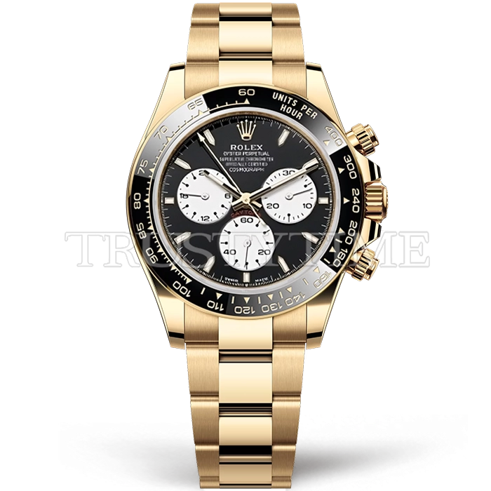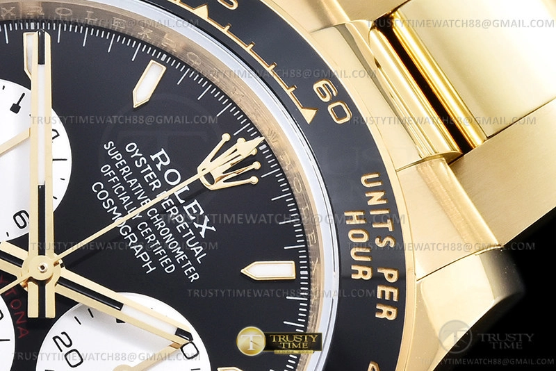 Часы Rolex из коллекции Daytona. Спортивные мужские часы Rolex Cosmograph Daytona 100th Anniversary 24H Hours of Le Mans 126528LN-0001 премиального качества (Артикул магазина: RX-3428) оснащены надежным автоматическим механизмом с автоподзаводом (работает от амплитуды движения руки) калибра 4132, в котором реализованы следующие функции: часовая, минутная и секундная стрелки, а так же хронограф. Круглый корпус часов цветы желтой золота, имеющий размер 40 мм и высоту 12 мм превосходно дополнит образ и украсит запястье своего обладателя. Для изготовления часов Rolex Cosmograph Daytona 100th Anniversary 24H Hours of Le Mans 126528LN-0001 предлагаемых в нашем интернет-магазине, применяются нержавеющая сталь 904L высокого качества (Швейцарский стандарт), а так же сапфировое стекло высокой прочности, благодаря чему обеспечивается максимальная защита от сколов и механических повреждений. Отличительной чертой данной модели является черный циферблат, часовые индексы которого обеспечивают часовые метки. Завершает образ браслет из нержавеющей стали цвета желтого золота с фирменной раскладывающейся застежкой Rolex. Водонепроницаемость данной модели составляет 100М (WR100) – в таких часах можно плавать и нырять без акваланга в морской и пресной воде, а также заниматься водными видами спорта.