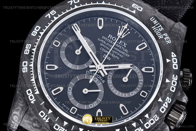 Часы Rolex из коллекции Daytona DIW. Спортивные мужские часы Rolex Cosmograph Daytona DIW All Black премиального качества (Артикул магазина: RX-2298) оснащены надежным автоматическим механизмом с автоподзаводом (работает от амплитуды движения руки) калибра 4130, в котором реализованы следующие функции: часовая, минутная и секундная стрелки, а так же хронограф. Круглый корпус часов черного цвета, имеющий размер 40 мм и высоту 12.5 мм превосходно дополнит образ и украсит запястье своего обладателя. Для изготовления часов Rolex Cosmograph Daytona DIW All Black предлагаемых в нашем интернет-магазине, применяются кованый карбон высокого качества (Швейцарский стандарт), а так же сапфировое стекло высокой прочности, благодаря чему обеспечивается максимальная защита от сколов и механических повреждений. Отличительной чертой данной модели является черный циферблат, часовые индексы которого обеспечивают часовые метки. Завершает образ нейлоновый ремешок черного цвета на липучке Rolex. Водонепроницаемость данной модели составляет 30М (WR30) – допускается минимальное воздействие с водой.