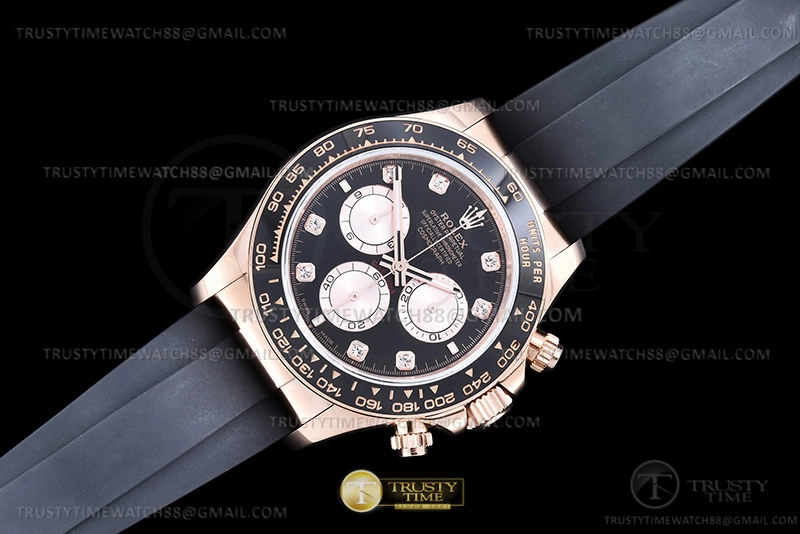 Часы Rolex из коллекции Daytona. Спортивные мужские часы Rolex Cosmograph Daytona 126515LN-0004 премиального качества (Артикул магазина: RX-3397) оснащены надежным автоматическим механизмом с автоподзаводом (работает от амплитуды движения руки) калибра 4131, в котором реализованы следующие функции: часовая, минутная и секундная стрелки, а так же хронограф. Круглый корпус часов розового цвета, имеющий размер 40 мм и высоту 12 мм превосходно дополнит образ и украсит запястье своего обладателя. Для изготовления часов Rolex Cosmograph Daytona 126515LN-0004 предлагаемых в нашем интернет-магазине, применяются нержавеющая сталь 904L высокого качества (Швейцарский стандарт), а так же сапфировое стекло высокой прочности, благодаря чему обеспечивается максимальная защита от сколов и механических повреждений. Отличительной чертой данной модели является черный циферблат, часовые индексы которого обеспечивают камни. Завершает образ каучуковый ремешок черного цвета с фирменной раскладывающейся застежкой Rolex. Водонепроницаемость данной модели составляет 100М (WR100) – в таких часах можно плавать и нырять без акваланга в морской и пресной воде, а также заниматься водными видами спорта.