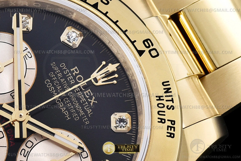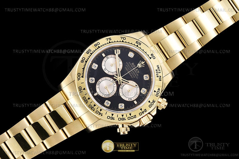 Часы Rolex из коллекции Daytona. Спортивные мужские часы Rolex Cosmograph Daytona 126508-0003 премиального качества (Артикул магазина: RX-3407) оснащены надежным автоматическим механизмом с автоподзаводом (работает от амплитуды движения руки) калибра 4131, в котором реализованы следующие функции: часовая, минутная и секундная стрелки, а так же хронограф. Круглый корпус часов цветы желтой золота, имеющий размер 40 мм и высоту 12 мм превосходно дополнит образ и украсит запястье своего обладателя. Для изготовления часов Rolex Cosmograph Daytona 126508-0003 предлагаемых в нашем интернет-магазине, применяются нержавеющая сталь 904L высокого качества (Швейцарский стандарт), а так же сапфировое стекло высокой прочности, благодаря чему обеспечивается максимальная защита от сколов и механических повреждений. Отличительной чертой данной модели является черный циферблат, часовые индексы которого обеспечивают камни. Завершает образ браслет из нержавеющей стали цвета желтого золота с фирменной раскладывающейся застежкой Rolex. Водонепроницаемость данной модели составляет 100М (WR100) – в таких часах можно плавать и нырять без акваланга в морской и пресной воде, а также заниматься водными видами спорта.
