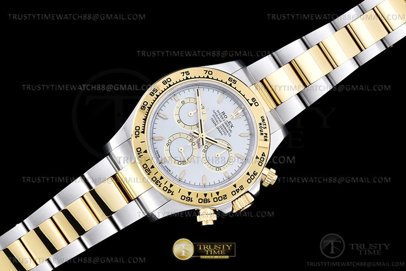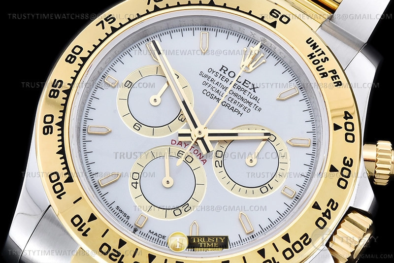 Часы Rolex из коллекции Daytona. Спортивные мужские часы Rolex Cosmograph Daytona 126503-0001 премиального качества (Артикул магазина: RX-3412) оснащены надежным автоматическим механизмом с автоподзаводом (работает от амплитуды движения руки) калибра 4131, в котором реализованы следующие функции: часовая, минутная и секундная стрелки, а так же хронограф. Круглый корпус часов комбинированного сталь с желтого золота цвета, имеющий размер 40 мм и высоту 12 мм превосходно дополнит образ и украсит запястье своего обладателя. Для изготовления часов Rolex Cosmograph Daytona 126503-0001 предлагаемых в нашем интернет-магазине, применяются нержавеющая сталь 904L высокого качества (Швейцарский стандарт), а так же сапфировое стекло высокой прочности, благодаря чему обеспечивается максимальная защита от сколов и механических повреждений. Отличительной чертой данной модели является белый циферблат, часовые индексы которого обеспечивают часовые метки. Завершает образ браслет из нержавеющей стали комбинированного сталь с желтым золотом цвета с фирменной раскладывающейся застежкой Rolex. Водонепроницаемость данной модели составляет 100М (WR100) – в таких часах можно плавать и нырять без акваланга в морской и пресной воде, а также заниматься водными видами спорта.