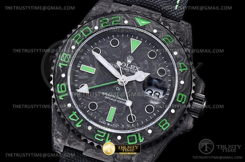 Часы Rolex из коллекции GMT Master II DIW. Спортивные мужские часы Rolex GMT Master II DIW Stinger премиального качества (Артикул магазина: RX-2036) оснащены надежным автоматическим механизмом с автоподзаводом (работает от амплитуды движения руки) калибра 3186, в котором реализованы следующие функции: часовая, минутная и секундная стрелки, а так же дата, двойное время (GMT). Круглый корпус часов черного цвета, имеющий размер 40 мм и высоту 12 мм превосходно дополнит образ и украсит запястье своего обладателя. Для изготовления часов Rolex GMT Master II DIW Stinger предлагаемых в нашем интернет-магазине, применяются кованый карбон высокого качества (Швейцарский стандарт), а так же сапфировое стекло высокой прочности, благодаря чему обеспечивается максимальная защита от сколов и механических повреждений. Отличительной чертой данной модели является черный циферблат, часовые индексы которого обеспечивают часовые метки. Завершает образ нейлоновый ремешок черного цвета на липучке Rolex. Водонепроницаемость данной модели составляет 30М (WR30) – допускается минимальное воздействие с водой.