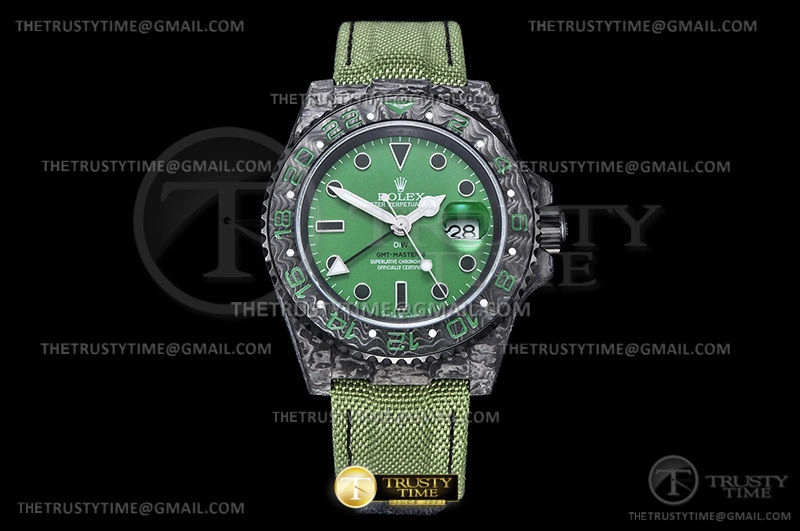 Часы Rolex из коллекции GMT Master II DIW. Спортивные мужские часы Rolex GMT Master II DIW Desert Camo премиального качества (Артикул магазина: RX-2034) оснащены надежным автоматическим механизмом с автоподзаводом (работает от амплитуды движения руки) калибра 3186, в котором реализованы следующие функции: часовая, минутная и секундная стрелки, а так же дата, двойное время (GMT). Круглый корпус часов черного цвета, имеющий размер 40 мм и высоту 12 мм превосходно дополнит образ и украсит запястье своего обладателя. Для изготовления часов Rolex GMT Master II DIW Desert Camo предлагаемых в нашем интернет-магазине, применяются кованый карбон высокого качества (Швейцарский стандарт), а так же сапфировое стекло высокой прочности, благодаря чему обеспечивается максимальная защита от сколов и механических повреждений. Отличительной чертой данной модели является зеленый циферблат, часовые индексы которого обеспечивают часовые метки. Завершает образ нейлоновый ремешок зеленого цвета на липучке Rolex. Водонепроницаемость данной модели составляет 30М (WR30) – допускается минимальное воздействие с водой.