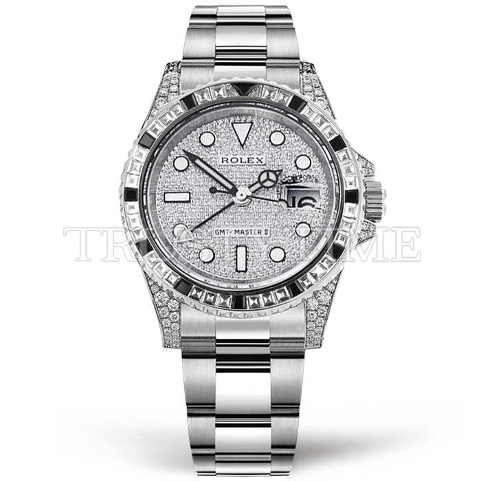 Часы Rolex из коллекции GMT Master II. Классические мужские, женские часы Rolex GMT Master II 116759SARU премиального качества (Артикул магазина: RX-1407) оснащены надежным автоматическим механизмом с автоподзаводом (работает от амплитуды движения руки) калибра 3186, в котором реализованы следующие функции: часовая, минутная и секундная стрелки, а так же дата, двойное время (GMT). Круглый корпус часов стального цвета, имеющий размер 40 мм и высоту 12 мм превосходно дополнит образ и украсит запястье своего обладателя. Для изготовления часов Rolex GMT Master II 116759SARU предлагаемых в нашем интернет-магазине, применяются нержавеющая сталь 904L высокого качества (Швейцарский стандарт), а так же сапфировое стекло высокой прочности, благодаря чему обеспечивается максимальная защита от сколов и механических повреждений. Отличительной чертой данной модели является серебристый циферблат, часовые индексы которого обеспечивают часовые метки. Завершает образ браслет из нержавеющей стали стального цвета с фирменной раскладывающейся застежкой Rolex. Водонепроницаемость данной модели составляет 30М (WR30) – допускается минимальное воздействие с водой.