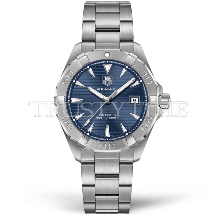 Часы Tag Heuer из коллекции Aquaracer Calibre 5. Классические мужские часы Tag Heuer Aquaracer 300M Calibre 5 41mm WAY2112.BA0928 премиального качества (Артикул магазина: TG-0572) оснащены надежным автоматическим механизмом с автоподзаводом (работает от амплитуды движения руки) калибра Sellita SW200, в котором реализованы следующие функции: часовая, минутная и секундная стрелки, а так же дата. Круглый корпус часов стального цвета, имеющий размер 41 мм и высоту 12 мм превосходно дополнит образ и украсит запястье своего обладателя. Для изготовления часов Tag Heuer Aquaracer 300M Calibre 5 41mm WAY2112.BA0928 предлагаемых в нашем интернет-магазине, применяются нержавеющая сталь 316L высокого качества (Швейцарский стандарт), а так же сапфировое стекло высокой прочности, благодаря чему обеспечивается максимальная защита от сколов и механических повреждений. Отличительной чертой данной модели является синий циферблат, часовые индексы которого обеспечивают часовые метки. Завершает образ браслет из нержавеющей стали стального цвета с фирменной раскладывающейся застежкой Tag Heuer. Водонепроницаемость данной модели составляет 30М (WR30) – допускается минимальное воздействие с водой.