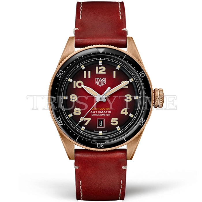 Часы Tag Heuer из коллекции Autavia. Спортивные мужские часы Tag Heuer Autavia Isograph Calibre 5 42mm WBE5193.FC8300 премиального качества (Артикул магазина: TG-0604) оснащены надежным автоматическим механизмом с автоподзаводом (работает от амплитуды движения руки) калибра Sellita SW200, в котором реализованы следующие функции: часовая, минутная и секундная стрелки, а так же дата. Круглый корпус часов розового цвета, имеющий размер 42 мм и высоту 13.5 мм превосходно дополнит образ и украсит запястье своего обладателя. Для изготовления часов Tag Heuer Autavia Isograph Calibre 5 42mm WBE5193.FC8300 предлагаемых в нашем интернет-магазине, применяются нержавеющая сталь 316L высокого качества (Швейцарский стандарт), а так же сапфировое стекло высокой прочности, благодаря чему обеспечивается максимальная защита от сколов и механических повреждений. Отличительной чертой данной модели является коричневый циферблат, часовые индексы которого обеспечивают арабские цифры. Завершает образ кожаный ремешок коричневого цвета с фирменной классической застежкой Tag Heuer. Водонепроницаемость данной модели составляет 30М (WR30) – допускается минимальное воздействие с водой.