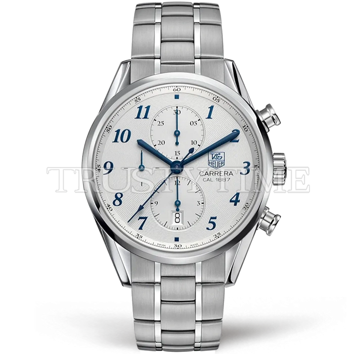 Часы Tag Heuer из коллекции Carrera Calibre 1887. Спортивные мужские часы Tag Heuer Carrera Calibre 1887 41mm CAR2114.BA0724 премиального качества (Артикул магазина: TG-0293) оснащены надежным автоматическим механизмом с автоподзаводом (работает от амплитуды движения руки) калибра Valjoux-7750, в котором реализованы следующие функции: часовая, минутная и секундная стрелки, а так же хронограф, дата. Круглый корпус часов стального цвета, имеющий размер 41 мм и высоту 16 мм превосходно дополнит образ и украсит запястье своего обладателя. Для изготовления часов Tag Heuer Carrera Calibre 1887 41mm CAR2114.BA0724 предлагаемых в нашем интернет-магазине, применяются нержавеющая сталь 316L высокого качества (Швейцарский стандарт), а так же сапфировое стекло высокой прочности, благодаря чему обеспечивается максимальная защита от сколов и механических повреждений. Отличительной чертой данной модели является белый циферблат, часовые индексы которого обеспечивают арабские цифры. Завершает образ браслет из нержавеющей стали стального цвета с фирменной раскладывающейся застежкой Tag Heuer. Водонепроницаемость данной модели составляет 30М (WR30) – допускается минимальное воздействие с водой.