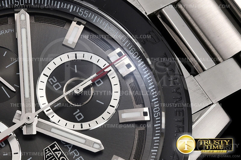 Часы Tag Heuer из коллекции Carrera Calibre Heuer 01. Спортивные мужские часы Tag Heuer Carrera Calibre Heuer 01 43mm CAR201W.BA0714 премиального качества (Артикул магазина: TG-0397) оснащены надежным автоматическим механизмом с автоподзаводом (работает от амплитуды движения руки) калибра 1887, в котором реализованы следующие функции: часовая, минутная и секундная стрелки, а так же хронограф, дата. Круглый корпус часов стального цвета, имеющий размер 43 мм и высоту 17 мм превосходно дополнит образ и украсит запястье своего обладателя. Для изготовления часов Tag Heuer Carrera Calibre Heuer 01 43mm CAR201W.BA0714 предлагаемых в нашем интернет-магазине, применяются нержавеющая сталь 316L высокого качества (Швейцарский стандарт), а так же сапфировое стекло высокой прочности, благодаря чему обеспечивается максимальная защита от сколов и механических повреждений. Отличительной чертой данной модели является серый циферблат, часовые индексы которого обеспечивают часовые метки. Завершает образ браслет из нержавеющей стали стального цвета с фирменной раскладывающейся застежкой Tag Heuer. Водонепроницаемость данной модели составляет 30М (WR30) – допускается минимальное воздействие с водой.