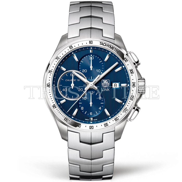 Часы Tag Heuer из коллекции Link. Спортивные мужские часы Tag Heuer Link Calibre 16 42mm CAT2015.BA0952 премиального качества (Артикул магазина: TG-0306) оснащены надежным автоматическим механизмом с автоподзаводом (работает от амплитуды движения руки) калибра Valjoux-7750, в котором реализованы следующие функции: часовая, минутная и секундная стрелки, а так же хронограф, дата. Круглый корпус часов стального цвета, имеющий размер 42 мм и высоту 15.7 мм превосходно дополнит образ и украсит запястье своего обладателя. Для изготовления часов Tag Heuer Link Calibre 16 42mm CAT2015.BA0952 предлагаемых в нашем интернет-магазине, применяются нержавеющая сталь 316L высокого качества (Швейцарский стандарт), а так же сапфировое стекло высокой прочности, благодаря чему обеспечивается максимальная защита от сколов и механических повреждений. Отличительной чертой данной модели является синий циферблат, часовые индексы которого обеспечивают часовые метки. Завершает образ браслет из нержавеющей стали стального цвета с фирменной раскладывающейся застежкой Tag Heuer. Водонепроницаемость данной модели составляет 30М (WR30) – допускается минимальное воздействие с водой.