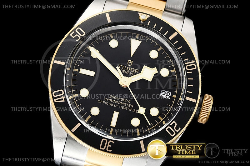 Часы Tudor из коллекции Heritage. Классические мужские часы Tudor Heritage Black Bay Black S&G 41mm M79733N-0002 премиального качества (Артикул магазина: TD-0769) оснащены надежным автоматическим механизмом с автоподзаводом (работает от амплитуды движения руки) калибра ETA2824-2, в котором реализованы следующие функции: часовая, минутная и секундная стрелки, а так же дата. Круглый корпус часов комбинированного сталь с желтого золота цвета, имеющий размер 41 мм и высоту 14.8 мм превосходно дополнит образ и украсит запястье своего обладателя. Для изготовления часов Tudor Heritage Black Bay Black S&G 41mm M79733N-0002 предлагаемых в нашем интернет-магазине, применяются нержавеющая сталь 316L высокого качества (Швейцарский стандарт), а так же сапфировое стекло высокой прочности, благодаря чему обеспечивается максимальная защита от сколов и механических повреждений. Отличительной чертой данной модели является черный циферблат, часовые индексы которого обеспечивают часовые метки. Завершает образ браслет из нержавеющей стали комбинированного сталь с желтым золотом цвета с фирменной раскладывающейся застежкой Tudor. Водонепроницаемость данной модели составляет 30М (WR30) – допускается минимальное воздействие с водой.
