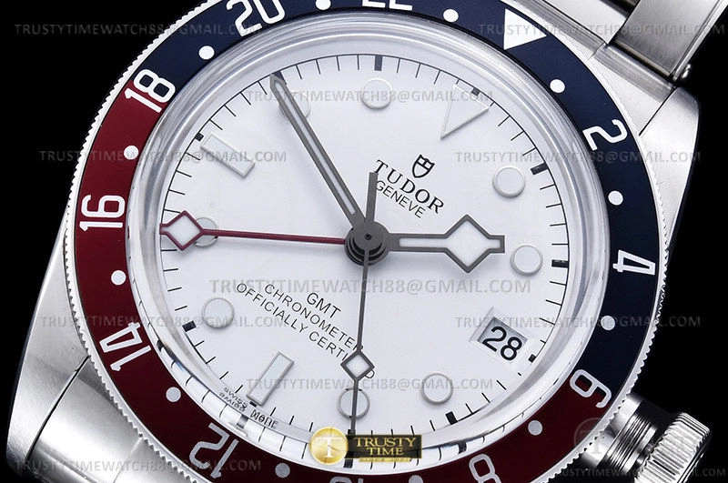 Часы Tudor из коллекции Black Bay GMT. Классические мужские часы Tudor Black Bay GMT S&G 41mm M79830RB-0010 премиального качества (Артикул магазина: TD-0835) оснащены надежным автоматическим механизмом с автоподзаводом (работает от амплитуды движения руки) калибра ETA2836-2, в котором реализованы следующие функции: часовая, минутная и секундная стрелки, а так же дата, двойное время (GMT). Круглый корпус часов стального цвета, имеющий размер 41 мм и высоту 14.5 мм превосходно дополнит образ и украсит запястье своего обладателя. Для изготовления часов Tudor Black Bay GMT S&G 41mm M79830RB-0010 предлагаемых в нашем интернет-магазине, применяются нержавеющая сталь 316L высокого качества (Швейцарский стандарт), а так же сапфировое стекло высокой прочности, благодаря чему обеспечивается максимальная защита от сколов и механических повреждений. Отличительной чертой данной модели является белый циферблат, часовые индексы которого обеспечивают часовые метки. Завершает образ браслет из нержавеющей стали стального цвета с фирменной раскладывающейся застежкой Tudor. Водонепроницаемость данной модели составляет 30М (WR30) – допускается минимальное воздействие с водой.