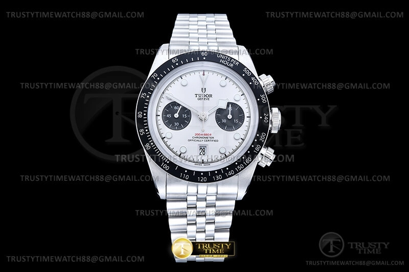 Часы Tudor из коллекции Black Bay Chronograph. Спортивные мужские часы Tudor Heritage Black Bay Chronograph M79360N-0014 премиального качества (Артикул магазина: TD-0853) оснащены надежным автоматическим механизмом с автоподзаводом (работает от амплитуды движения руки) калибра Valjoux-7750, в котором реализованы следующие функции: часовая, минутная и секундная стрелки, а так же хронограф, дата. Круглый корпус часов стального цвета, имеющий размер 41 мм и высоту 16 мм превосходно дополнит образ и украсит запястье своего обладателя. Для изготовления часов Tudor Heritage Black Bay Chronograph M79360N-0014 предлагаемых в нашем интернет-магазине, применяются нержавеющая сталь 316L высокого качества (Швейцарский стандарт), а так же сапфировое стекло высокой прочности, благодаря чему обеспечивается максимальная защита от сколов и механических повреждений. Отличительной чертой данной модели является белый циферблат, часовые индексы которого обеспечивают часовые метки. Завершает образ браслет из нержавеющей стали стального цвета с фирменной раскладывающейся застежкой Tudor. Водонепроницаемость данной модели составляет 30М (WR30) – допускается минимальное воздействие с водой.