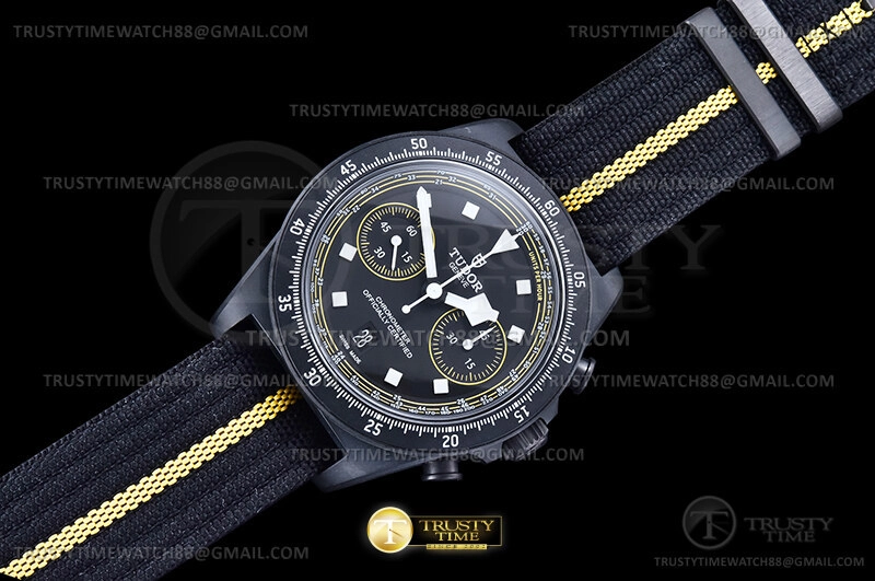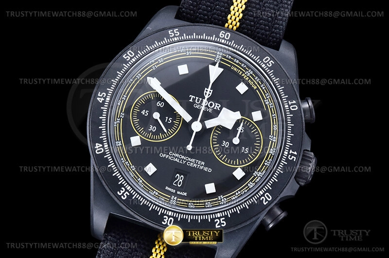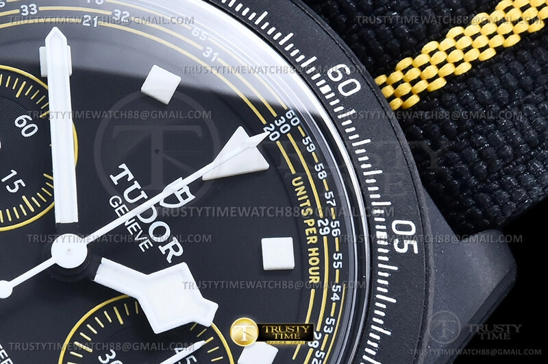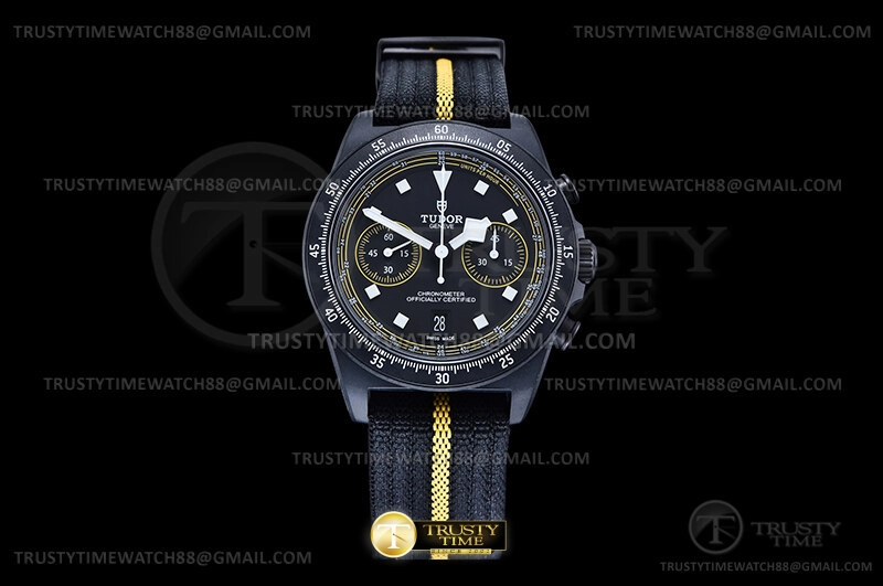 Часы Tudor из коллекции Pelagos. Спортивные мужские часы Tudor Pelagos FXD Chrono Yellow Tour de France 43mm M25827KNJN-0001 премиального качества (Артикул магазина: TD-0856) оснащены надежным автоматическим механизмом с автоподзаводом (работает от амплитуды движения руки) калибра Valjoux-7750, в котором реализованы следующие функции: часовая, минутная и секундная стрелки, а так же хронограф, дата. Круглый корпус часов черного цвета, имеющий размер 43 мм и высоту 15.5 мм превосходно дополнит образ и украсит запястье своего обладателя. Для изготовления часов Tudor Pelagos FXD Chrono Yellow Tour de France 43mm M25827KNJN-0001 предлагаемых в нашем интернет-магазине, применяются нержавеющая сталь 316F высокого качества (Швейцарский стандарт), а так же сапфировое стекло высокой прочности, благодаря чему обеспечивается максимальная защита от сколов и механических повреждений. Отличительной чертой данной модели является черный циферблат, часовые индексы которого обеспечивают часовые метки. Завершает образ нейлоновый ремешок черного цвета с фирменной классической застежкой Tudor. Водонепроницаемость данной модели составляет 30М (WR30) – допускается минимальное воздействие с водой.