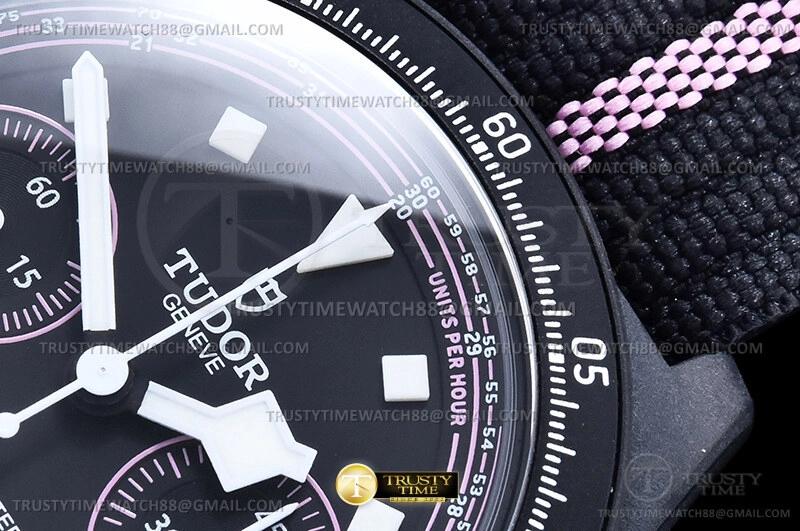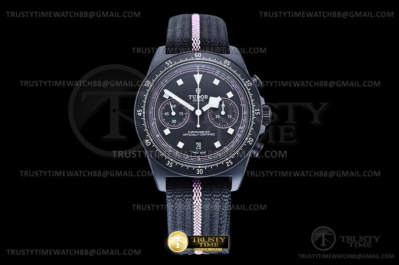 Часы Tudor из коллекции Pelagos. Спортивные мужские часы Tudor Pelagos FXD Chrono Pink Giro d'Italia 43mm M25827KNRS-0002 премиального качества (Артикул магазина: TD-0855) оснащены надежным автоматическим механизмом с автоподзаводом (работает от амплитуды движения руки) калибра Valjoux-7750, в котором реализованы следующие функции: часовая, минутная и секундная стрелки, а так же хронограф, дата. Круглый корпус часов черного цвета, имеющий размер 43 мм и высоту 15.5 мм превосходно дополнит образ и украсит запястье своего обладателя. Для изготовления часов Tudor Pelagos FXD Chrono Pink Giro d'Italia 43mm M25827KNRS-0002 предлагаемых в нашем интернет-магазине, применяются нержавеющая сталь 316F высокого качества (Швейцарский стандарт), а так же сапфировое стекло высокой прочности, благодаря чему обеспечивается максимальная защита от сколов и механических повреждений. Отличительной чертой данной модели является черный циферблат, часовые индексы которого обеспечивают часовые метки. Завершает образ нейлоновый ремешок черного цвета с фирменной классической застежкой Tudor. Водонепроницаемость данной модели составляет 30М (WR30) – допускается минимальное воздействие с водой.