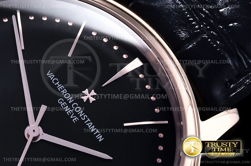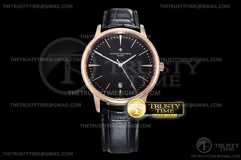 Часы Vacheron Constantin из коллекции Patrimony. Классические мужские часы Vacheron Constantin Patrimony Contemporaine Self-Winding 40mm 85180/000R-9232 премиального качества (Артикул магазина: VC-0247) оснащены надежным автоматическим механизмом с автоподзаводом (работает от амплитуды движения руки) калибра VC 2450, в котором реализованы следующие функции: часовая, минутная и секундная стрелки, а так же дата. Круглый корпус часов розового цвета, имеющий размер 40 мм и высоту 9.5 мм превосходно дополнит образ и украсит запястье своего обладателя. Для изготовления часов Vacheron Constantin Patrimony Contemporaine Self-Winding 40mm 85180/000R-9232 предлагаемых в нашем интернет-магазине, применяются нержавеющая сталь 316L высокого качества (Швейцарский стандарт), а так же сапфировое стекло высокой прочности, благодаря чему обеспечивается максимальная защита от сколов и механических повреждений. Отличительной чертой данной модели является черный циферблат, часовые индексы которого обеспечивают часовые метки. Завершает образ кожаный ремешок черного цвета с фирменной классической застежкой Vacheron Constantin. Водонепроницаемость данной модели составляет 30М (WR30) – допускается минимальное воздействие с водой.