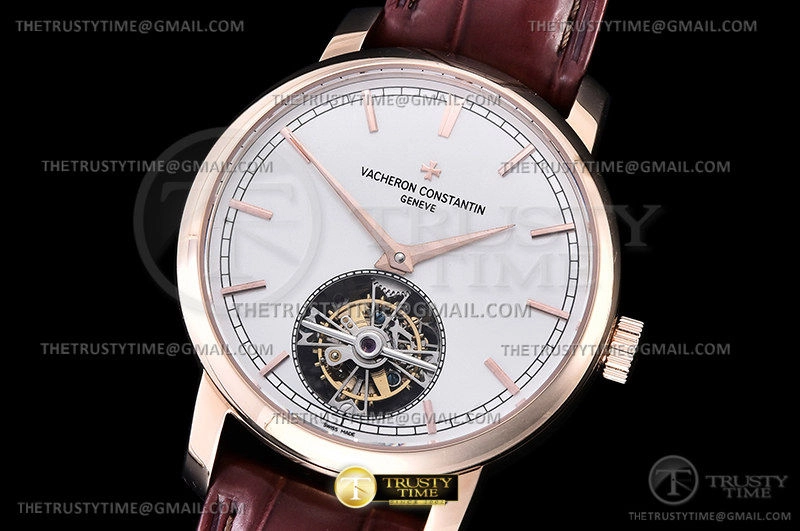 Часы Vacheron Constantin из коллекции Traditionnelle Tourbillon. Классические мужские часы Vacheron Constantin Traditionnelle Tourbillon 41mm 6000T/000R-B346 премиального качества (Артикул магазина: VC-0278) оснащены надежным автоматическим механизмом с ручным заводом калибра Seagull Handwind Tourbillon, в котором реализованы следующие функции: часова и минутка стрелки, а так же турбийон. Круглый корпус часов розового цвета, имеющий размер 41 мм и высоту 13 мм превосходно дополнит образ и украсит запястье своего обладателя. Для изготовления часов Vacheron Constantin Traditionnelle Tourbillon 41mm 6000T/000R-B346 предлагаемых в нашем интернет-магазине, применяются нержавеющая сталь 316L высокого качества (Швейцарский стандарт), а так же сапфировое стекло высокой прочности, благодаря чему обеспечивается максимальная защита от сколов и механических повреждений. Отличительной чертой данной модели является белый циферблат, часовые индексы которого обеспечивают часовые метки. Завершает образ кожаный ремешок коричневого цвета с фирменной раскладывающейся застежкой Vacheron Constantin. Водонепроницаемость данной модели составляет 30М (WR30) – допускается минимальное воздействие с водой.